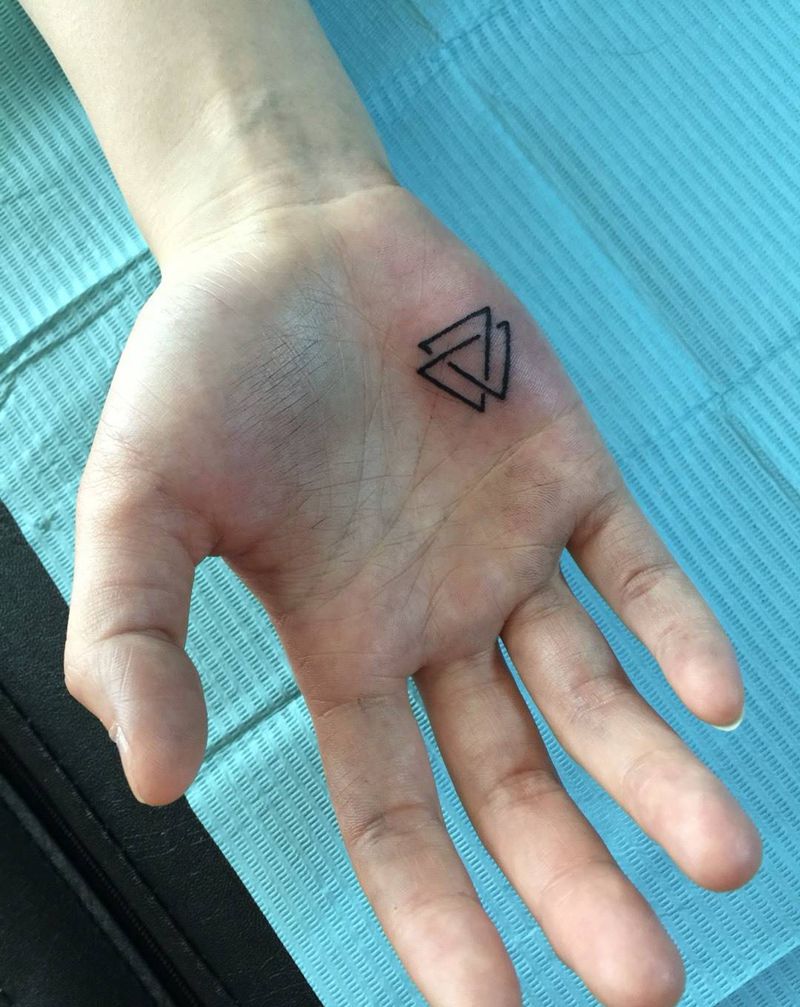 手心几何纹身图片_成品手部几何清新纹身图案