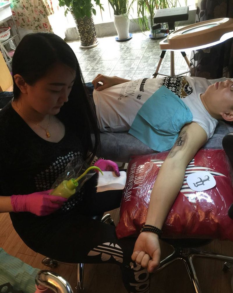 当前位置: 首页 >山东省济南市纹身店-倧玥刺青纹身图案>工作照纹身图片_手臂背部字符宗教纹身图案