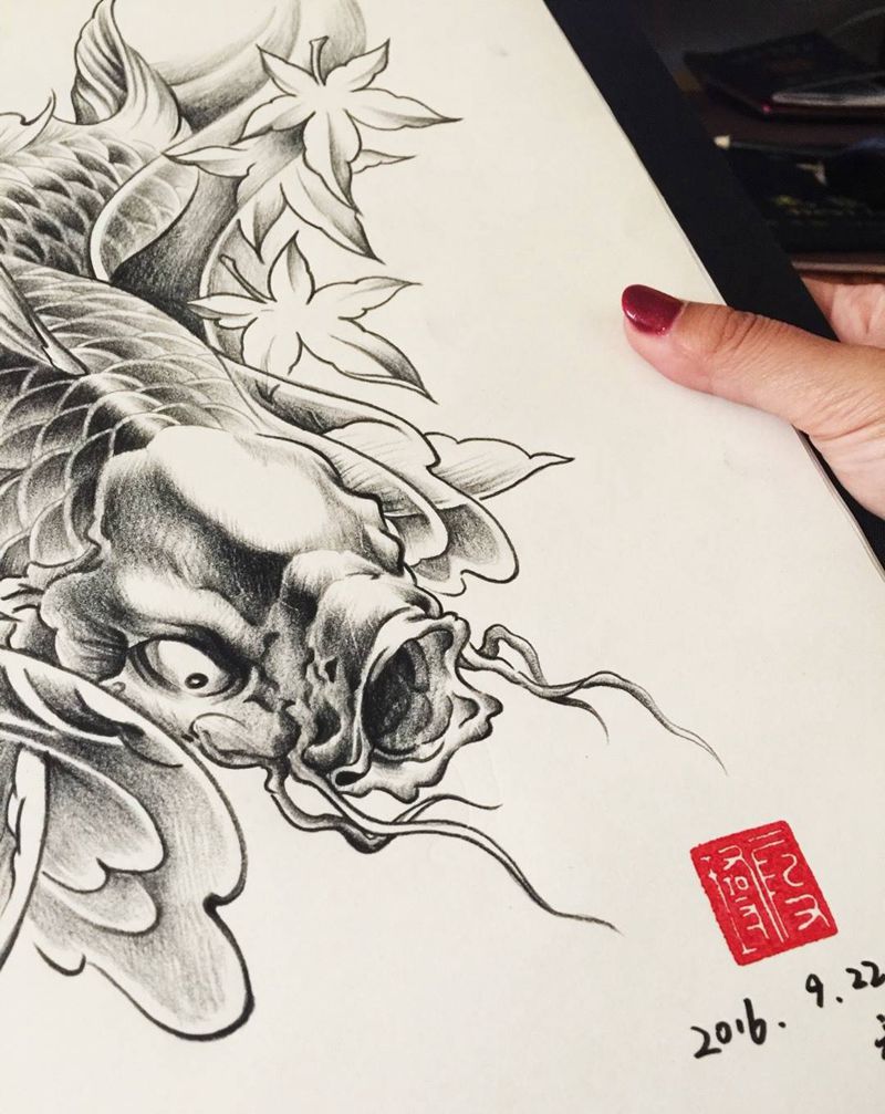 当前位置: 首页 >山东省济南市纹身店-倧玥刺青纹身图案>鲤鱼纹身图片_手稿背部手臂腿部胸部传统动物肩部纹身图案