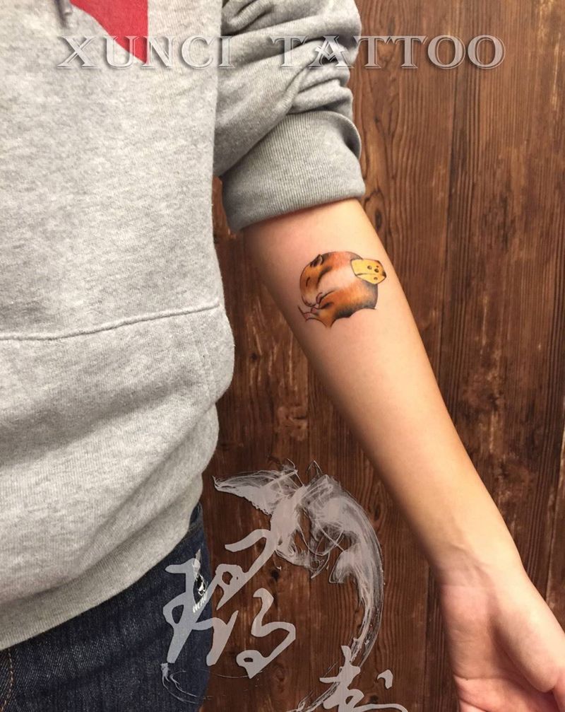 爱宠仓鼠纹身图片_成品手部手臂传统写实清新动物原创贴纸纹身图案