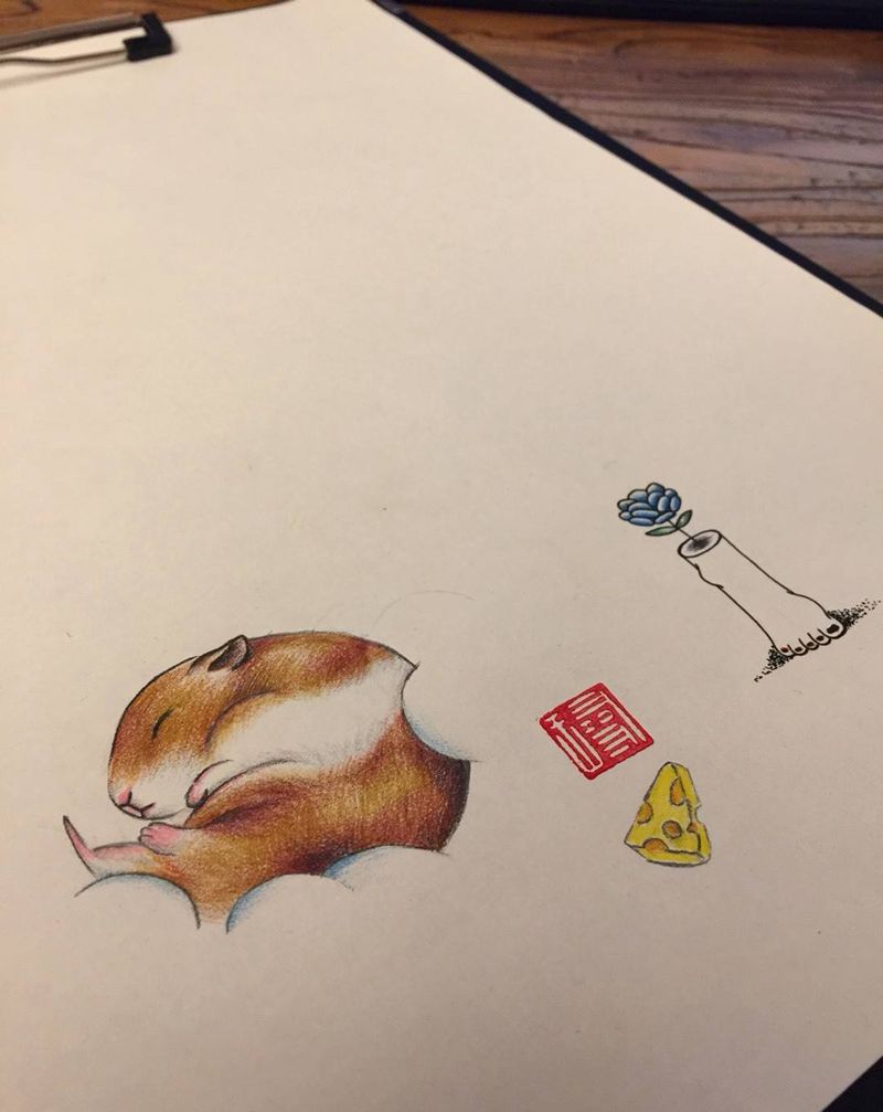 爱宠仓鼠纹身图片_成品手部手臂传统写实清新动物原创贴纸纹身图案