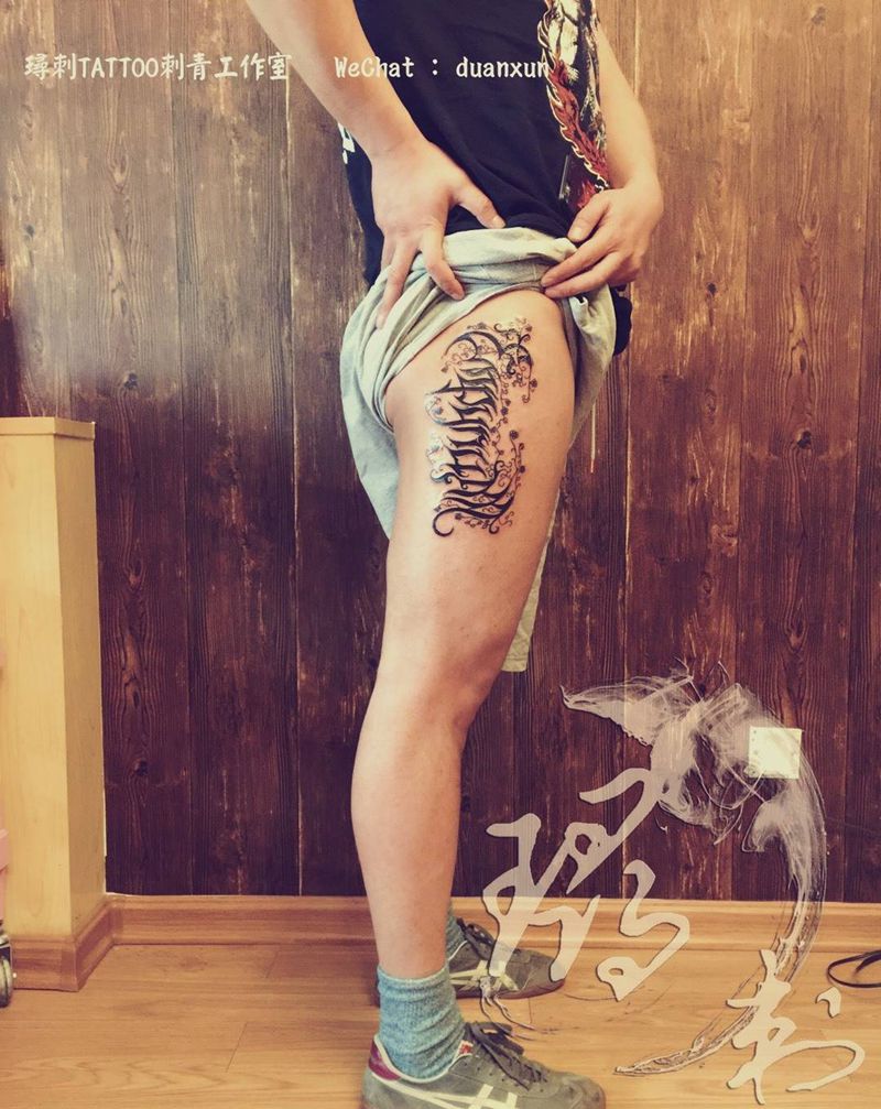 哥特纹身图片_成品臀部腿部欧美传统贴纸几何字符原创图腾纹身图案
