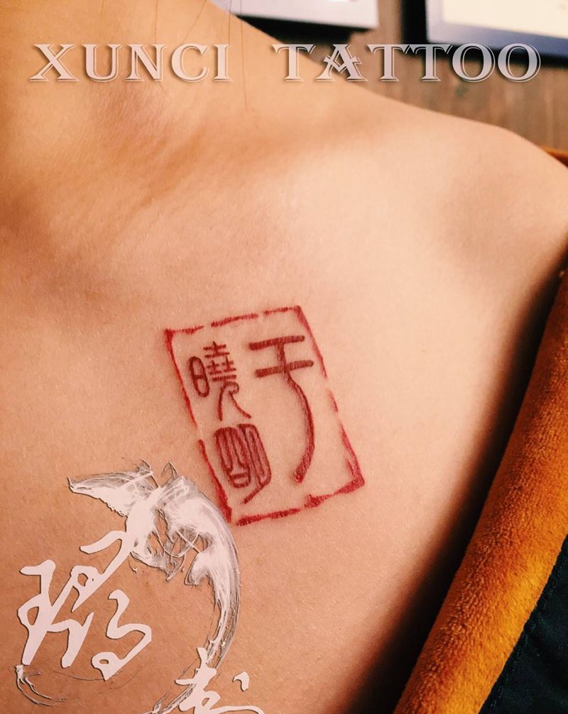 当前位置: 首页 >山东省济南市纹身店-倧玥刺青纹身图案>篆纹身图片_成品颈部肩部胸部传统国画字符人物原创图腾纹身图案