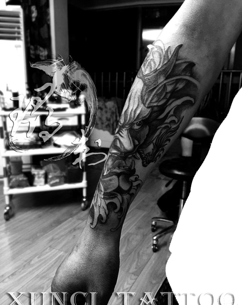 当前位置: 首页 >山东省济南市纹身店-倧玥刺青纹身图案>般若纹身图片_成品手臂传统鬼神写实手部纹身图案
