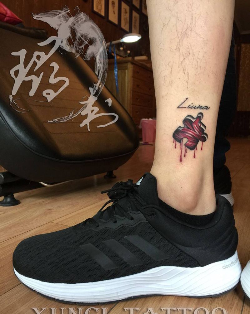 情侣 肉肉拼图纹身图片_成品脚部欧美传统写实清新人物情侣字符几何纹身图案