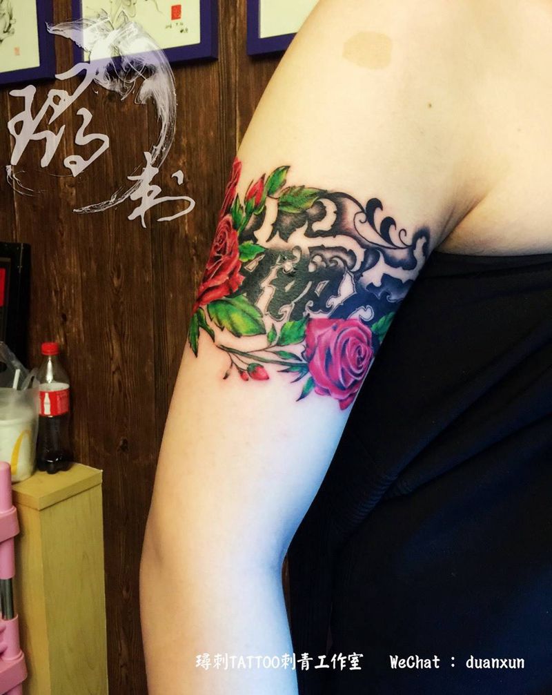 当前位置: 首页 >山东省济南市纹身店-倧玥刺青纹身图案>臂环纹身图片_成品手臂欧美传统写实清新贴纸字符植物原创纹身图案