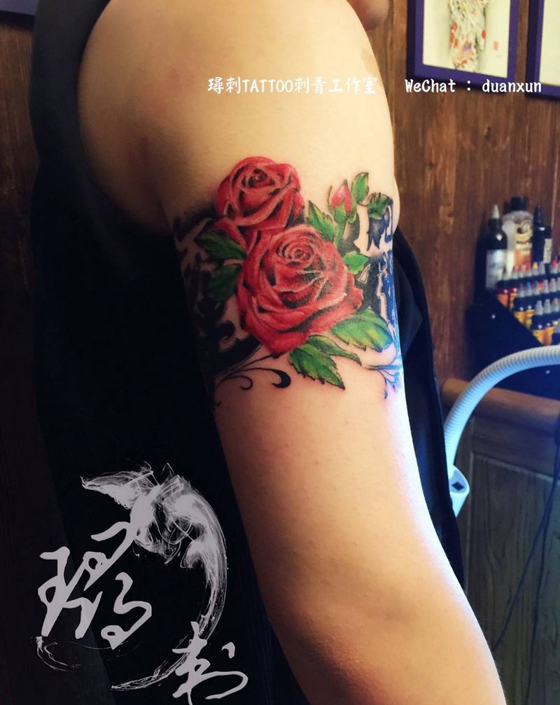 当前位置: 首页 >山东省济南市纹身店-倧玥刺青纹身图案>臂环纹身图片_成品手臂欧美传统写实清新贴纸字符植物原创纹身图案