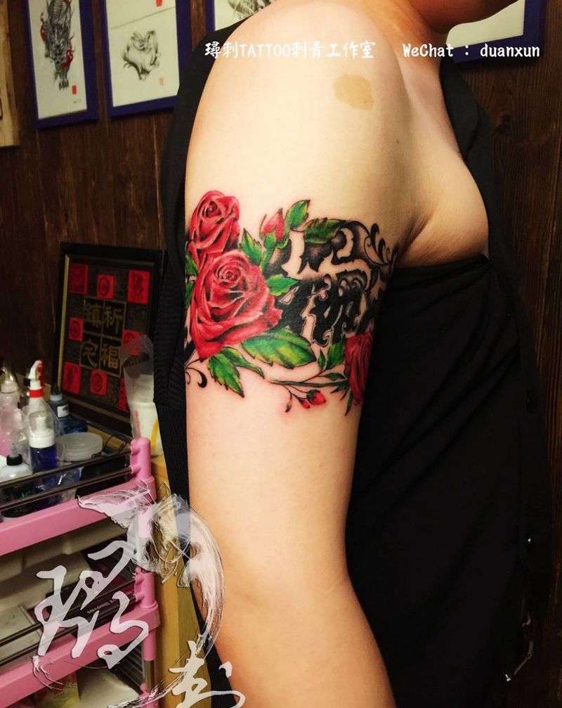 当前位置: 首页 >山东省济南市纹身店-倧玥刺青纹身图案>臂环纹身图片_成品手臂欧美传统写实清新贴纸字符植物原创纹身图案