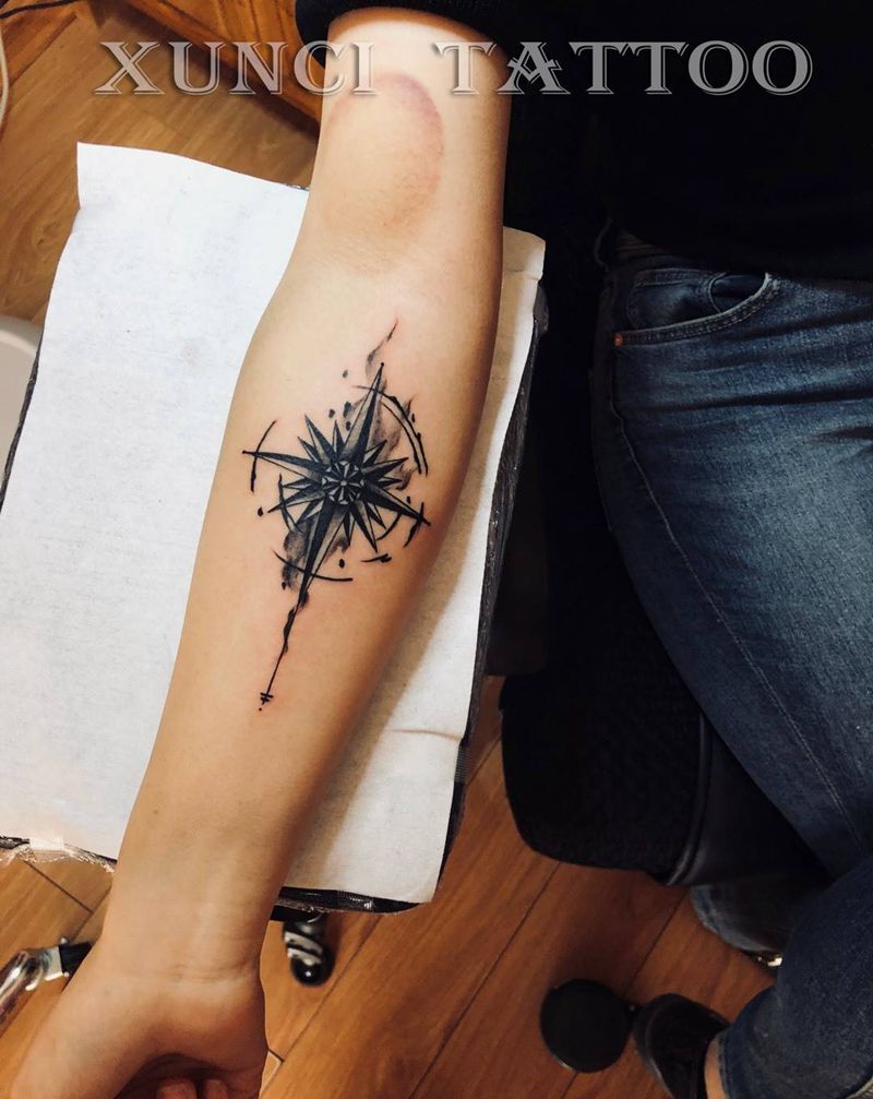 当前位置: 首页 >山东省济南市纹身店-倧玥刺青纹身图案>指南针纹身图片_成品手稿手臂手部国画传统清新贴纸几何图腾纹身图案