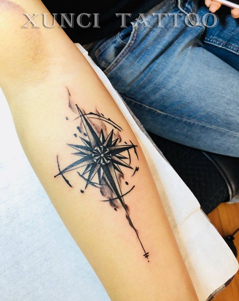 当前位置: 首页 >山东省济南市纹身店-倧玥刺青纹身图案>指南针纹身图片_成品手稿手臂手部国画传统清新贴纸几何图腾纹身图案