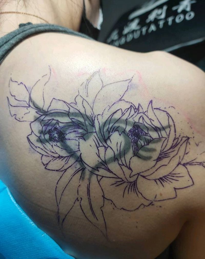 当前位置: 首页 >山东省济南市纹身店-灵渡刺青纹身图案>遮盖纹身图片_肩部背部水彩纹身图案