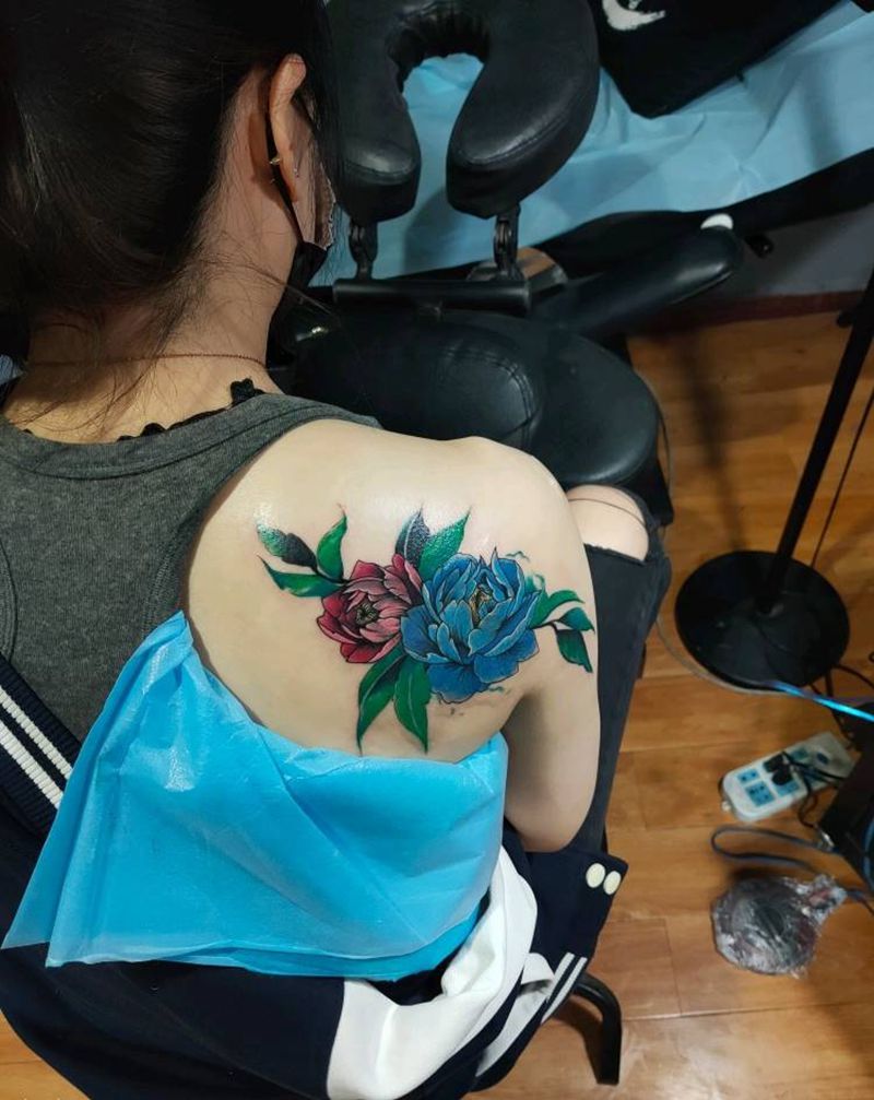 当前位置: 首页 >山东省济南市纹身店-灵渡刺青纹身图案>遮盖纹身图片_肩部背部水彩纹身图案