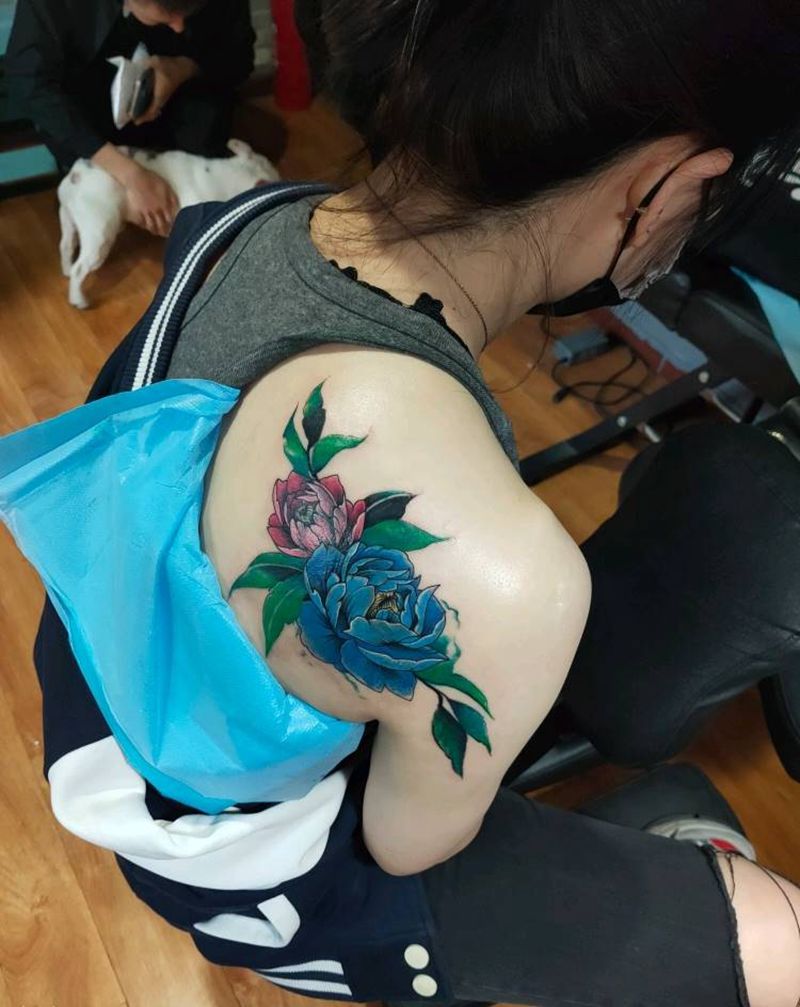 遮盖纹身图片_肩部背部水彩纹身图案
