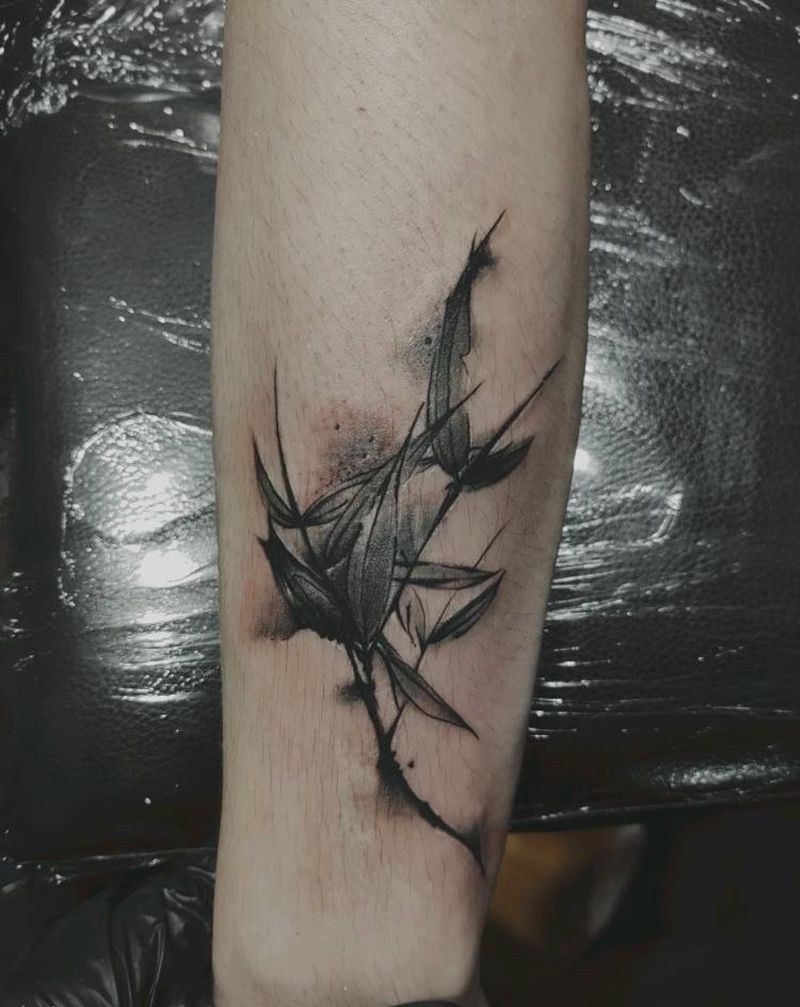 竹叶纹身图片_手臂手部老传统水墨纹身图案