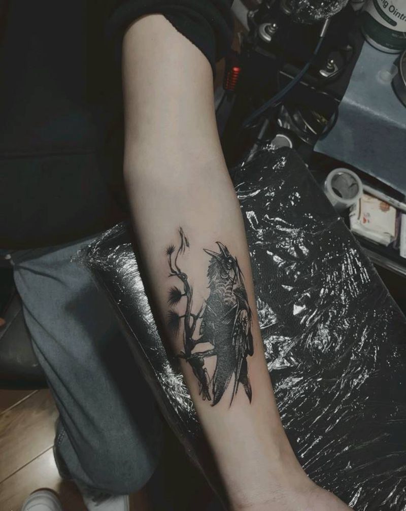 当前位置: 首页 >山东省济南市纹身店-灵渡刺青纹身图案>遮盖纹身图片_手臂欧美写实几何纹身图案