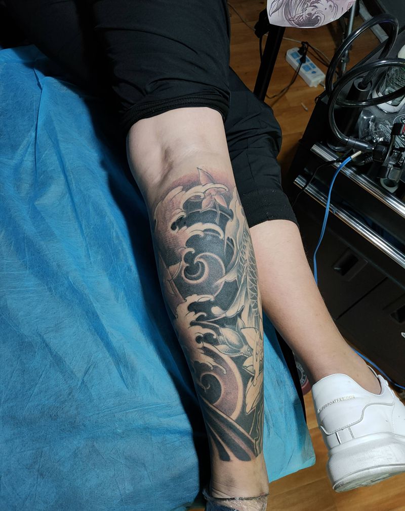 当前位置: 首页 >山东省济南市纹身店-灵渡刺青纹身图案>小腿鲤鱼纹身图片_腿部老传统新传统纹身图案
