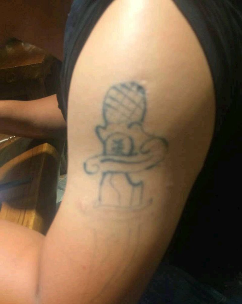 • T包小腿吹火男+阿多福纹身图片_腿部老传统新传统吹火男阿