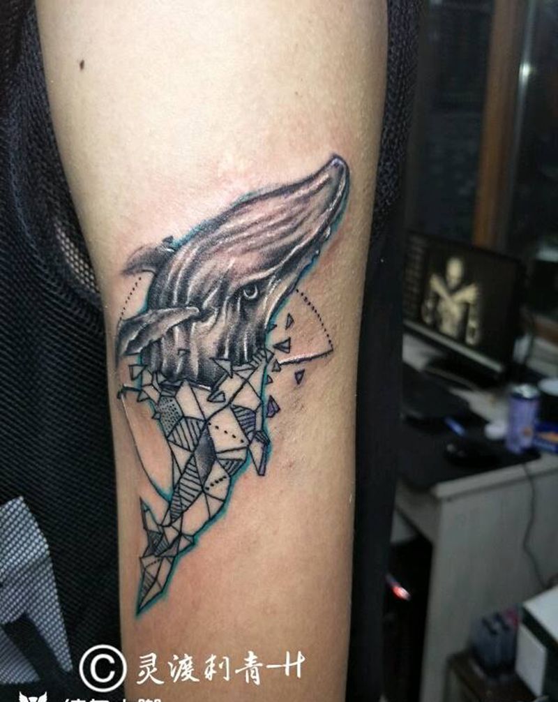 几个鲸鱼纹身图片_手臂欧美几何成品纹身图案