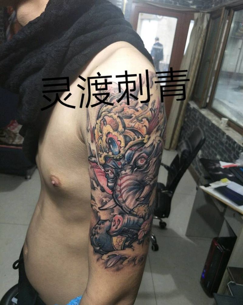 当前位置: 首页 >山东省济南市纹身店-灵渡刺青纹身图案>大臂象神纹身图片_手臂传统动物人物鬼神宗教成品纹身图案