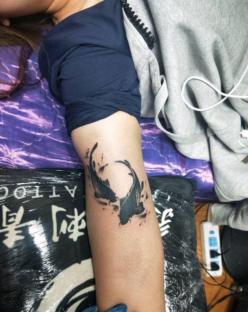 当前位置: 首页 >山东省济南市纹身店-灵渡刺青纹身图案>遮盖纹身图片_手臂水墨纹身图案