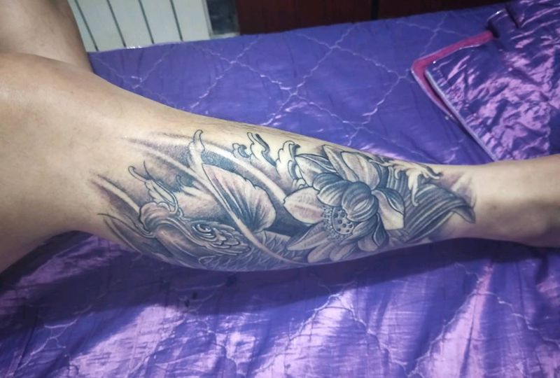 • T网红王老大花腿龙纹身图片_腿部新传统纹身图案