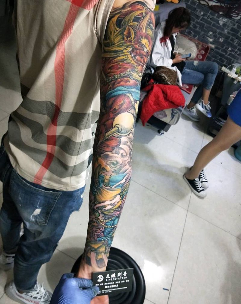 当前位置: 首页 >山东省济南市纹身店-灵渡刺青纹身图案>传统彩色花臂纹身图片_手臂传统人物鬼神成品纹身图案