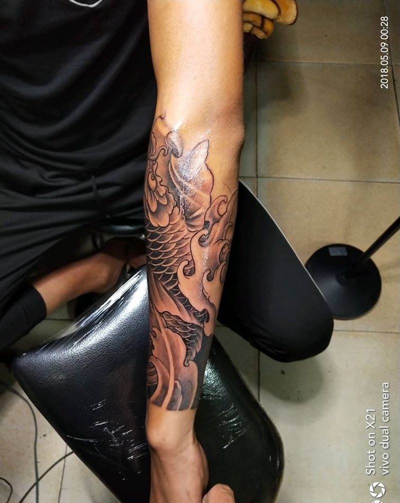当前位置: 首页 >山东省济南市纹身店-济南老男孩刺青纹身图案>小臂鲤鱼纹身图片