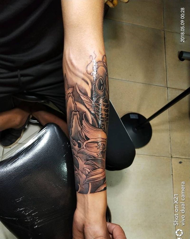 当前位置: 首页 >山东省济南市纹身店-济南老男孩刺青纹身图案>小臂鲤鱼纹身图片
