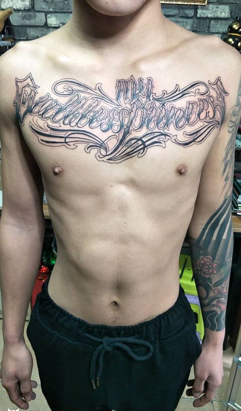 当前位置: 首页 >山东省济南市纹身店-济南老男孩刺青纹身图案>花体英文纹身图片