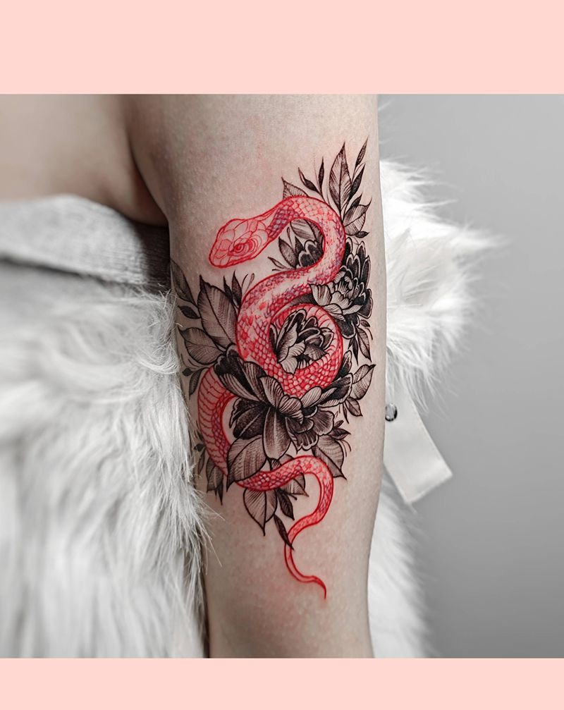 花与蛇纹身图片_手臂图腾素花蛇纹身图案