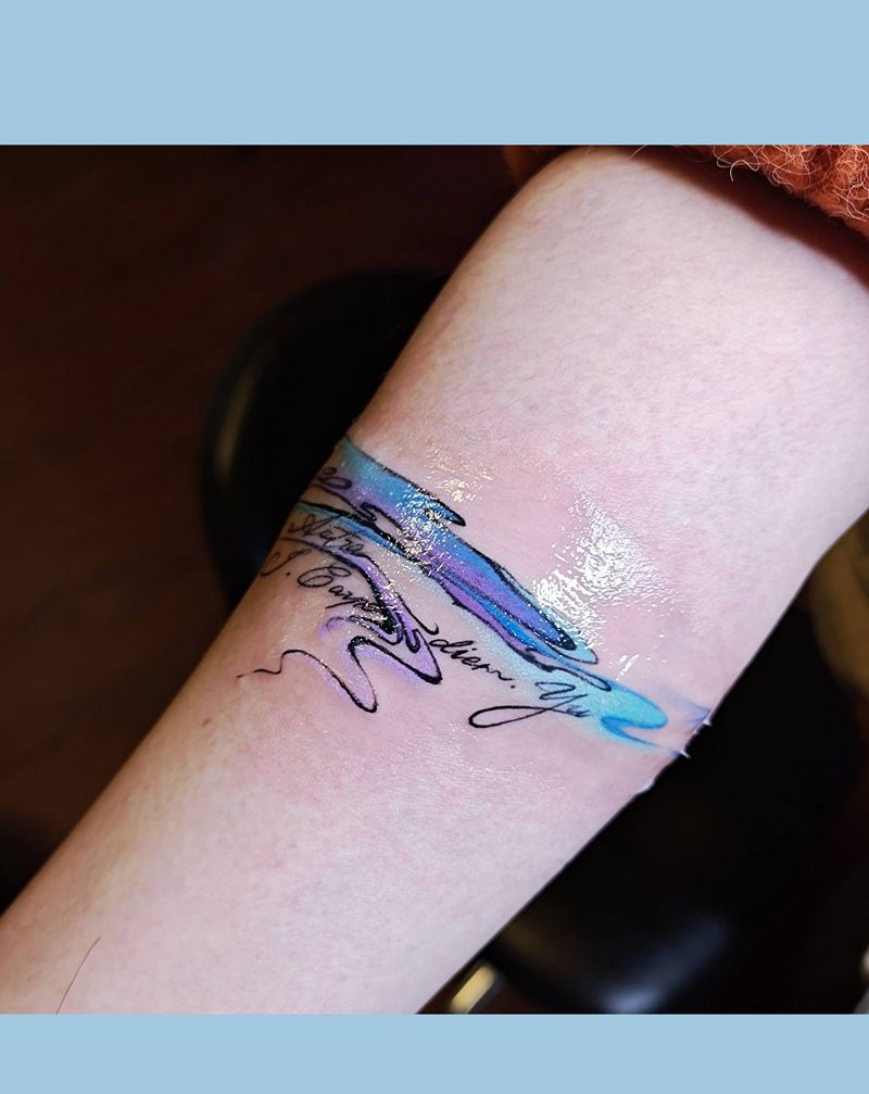 当前位置: 首页 >山东省济南市纹身店-反骨刺青纹身工作室纹身图案>随意的臂环纹身图片_手臂水彩臂环纹身图案