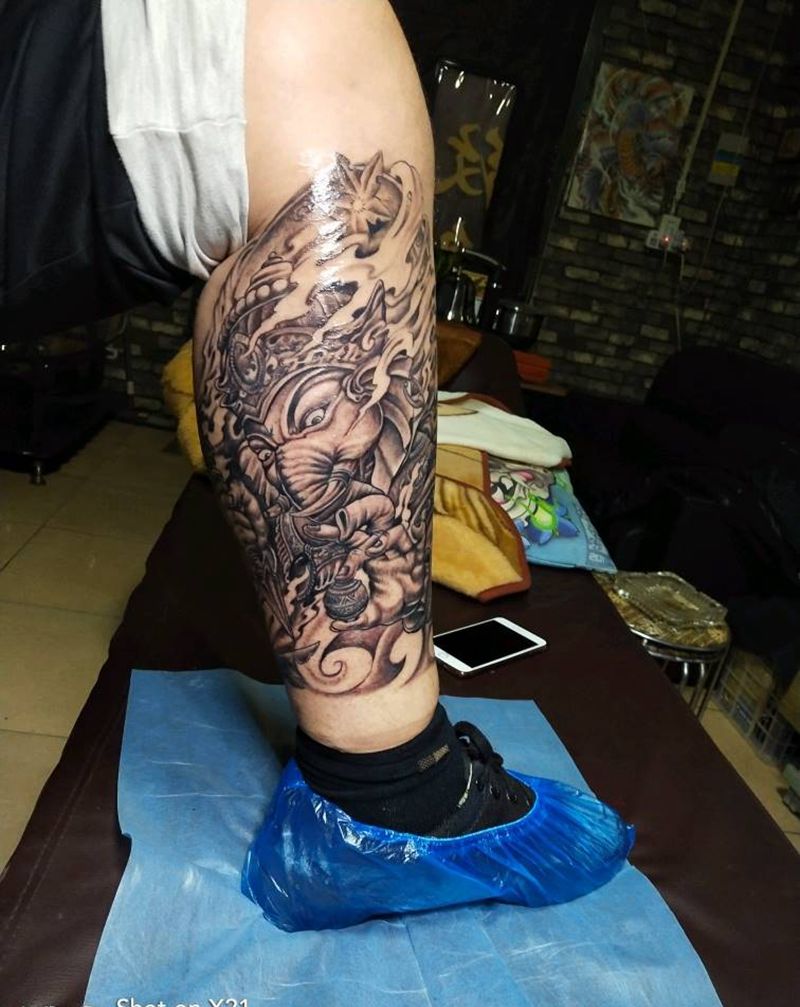 当前位置: 首页 >山东省济南市纹身店-济南老男孩刺青纹身图案>象神纹身图片