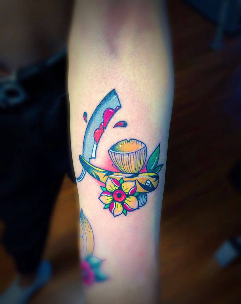 当前位置: 首页 >山东省济南市纹身店-将·刺青纹身图案>剃刀纹身图片_手臂New SchoolOld School剃刀纹身图案