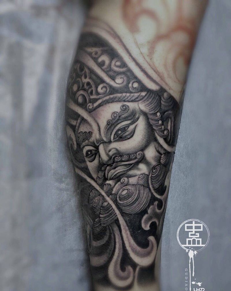 当前位置: 首页 >山东省济南市纹身店-将·刺青纹身图案>四大天王纹身图片_腿部新传统四大天王纹身图案