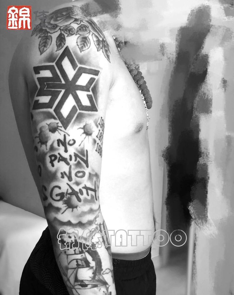 当前位置: 首页 >山东省济南市纹身店-锦体社TATTOO纹身图案>拼接花臂纹身图片_手臂纹身图案