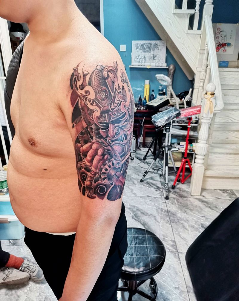 鬼武士纹身图片_手臂肩部新传统老传统纹身图案