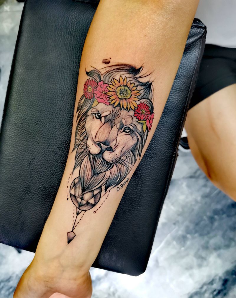 欧美狮子纹身图片_手臂腿部New School欧美写实纹身图案