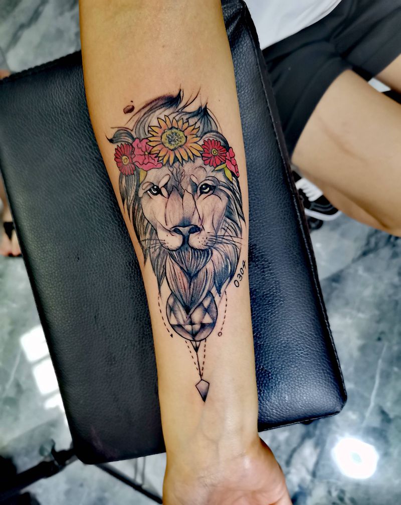 欧美狮子纹身图片_手臂腿部New School欧美写实纹身图案