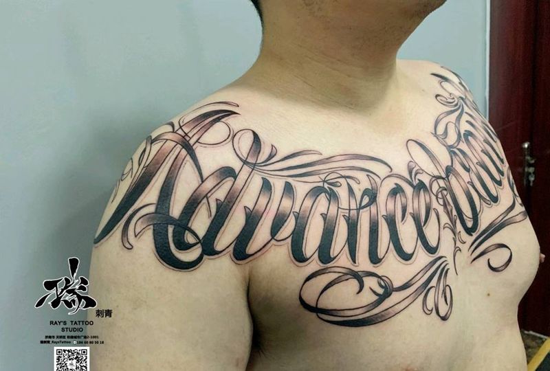 奇卡诺花胸纹身图片_胸部花体字纹身图案