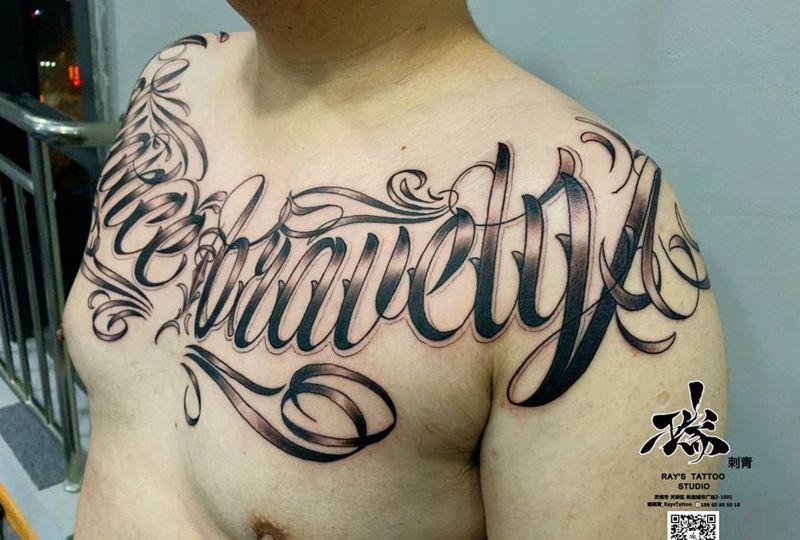 奇卡诺花胸纹身图片_胸部花体字纹身图案