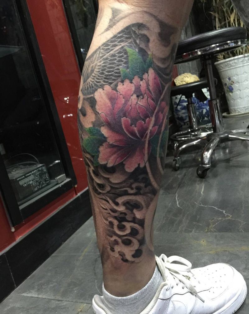 • T网红王老大花腿龙纹身图片_腿部新传统纹身图案