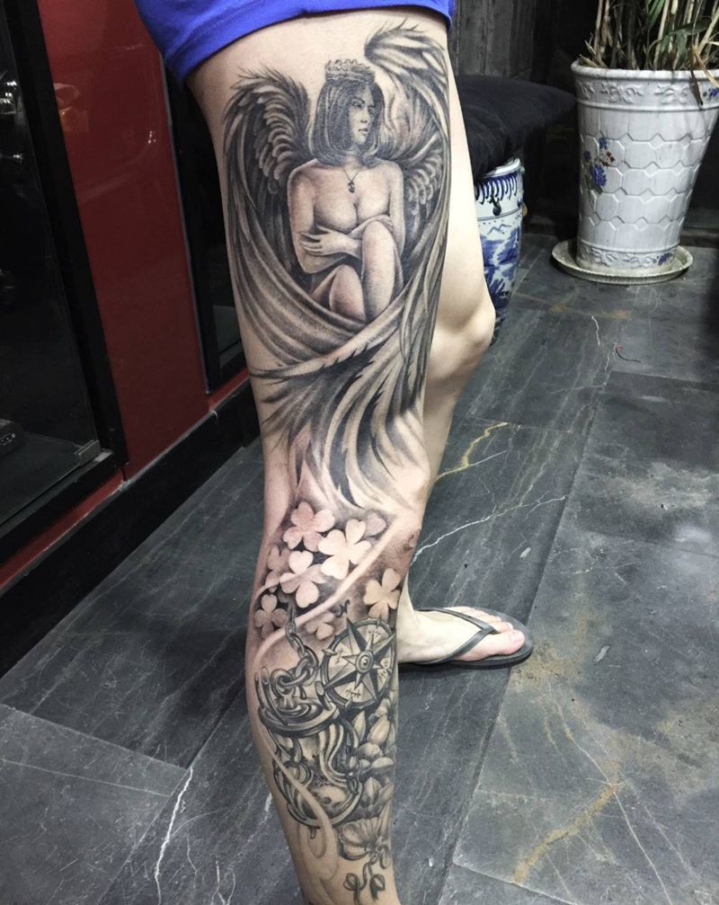 • T网红王老大花腿龙纹身图片_腿部新传统纹身图案