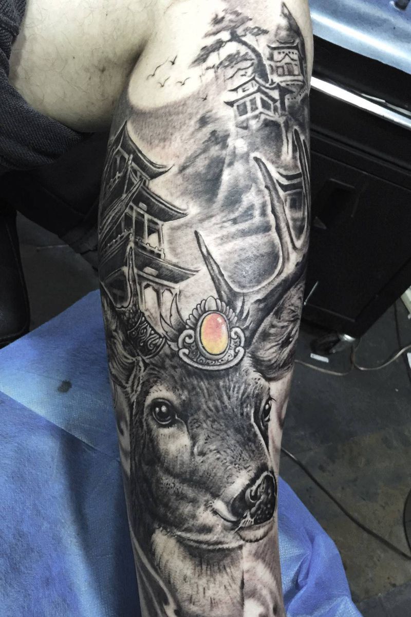 当前位置: 首页 >山东省济南市纹身店-老牛纹身工作室纹身图案>鹿纹身图片