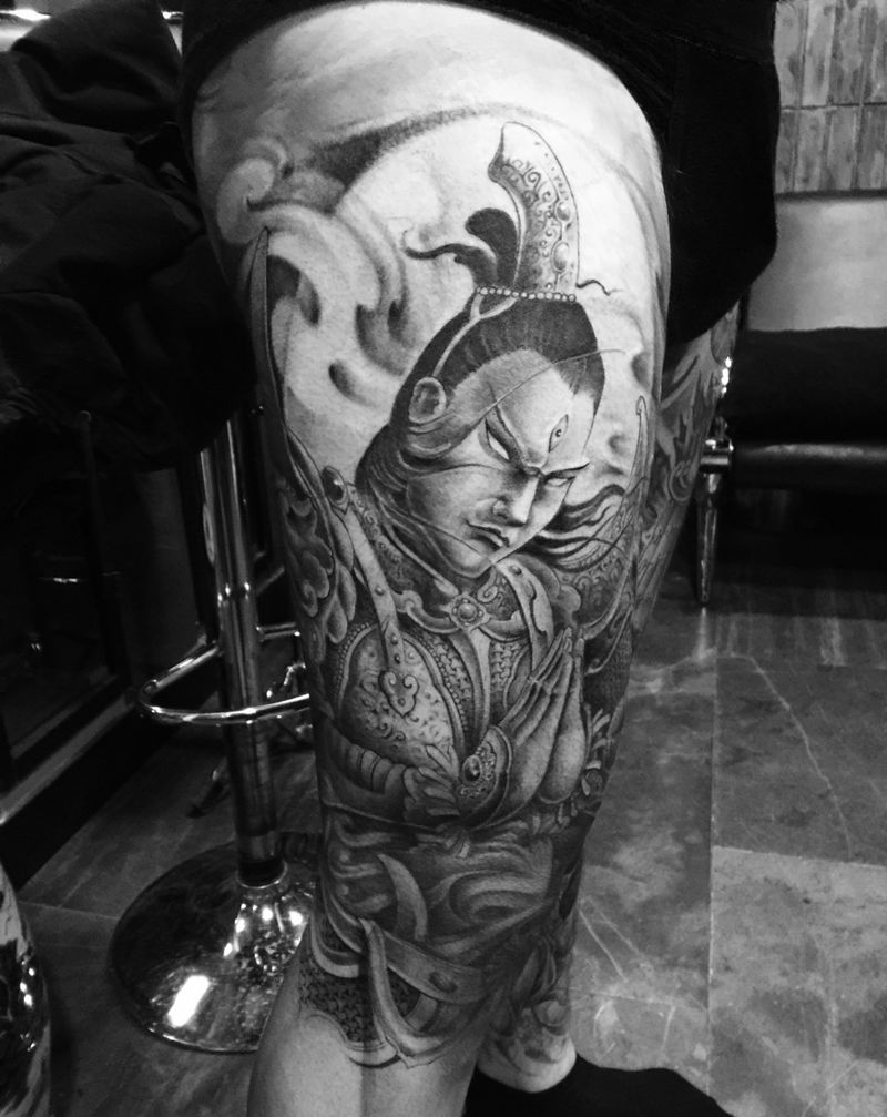 当前位置: 首页 >山东省济南市纹身店-老牛纹身工作室纹身图案>二郎神纹身图片