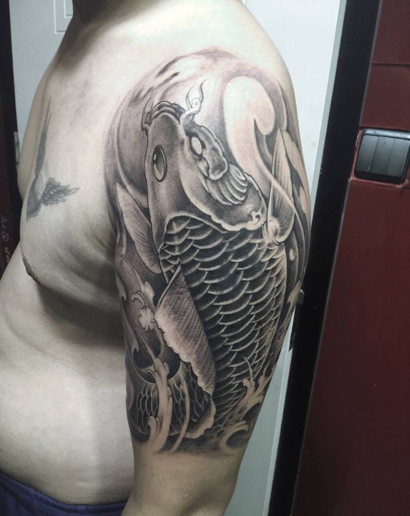 当前位置: 首页 >山东省济南市纹身店-老牛纹身工作室纹身图案>鲤鱼遮盖字母.纹身图片