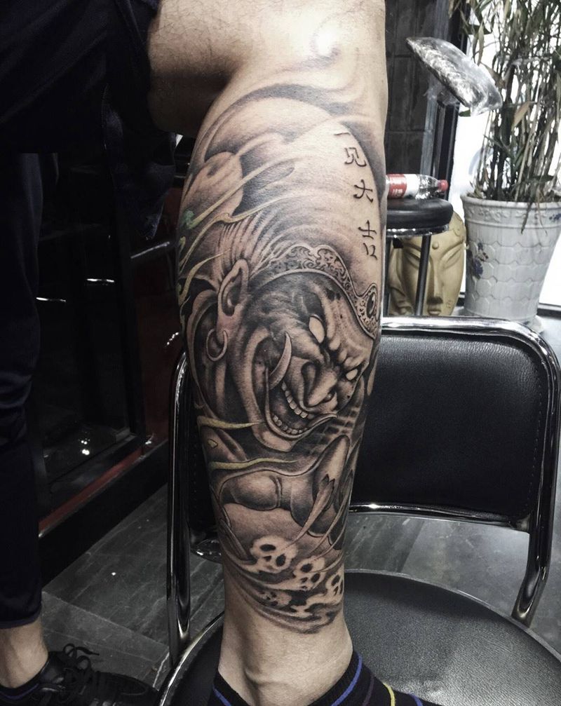• T网红王老大花腿龙纹身图片_腿部新传统纹身图案