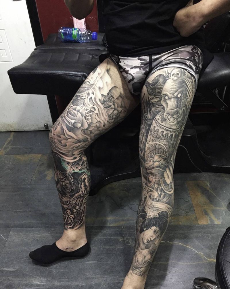 当前位置: 首页 >山东省济南市纹身店-老牛纹身工作室纹身图案>包整腿.纹身图片