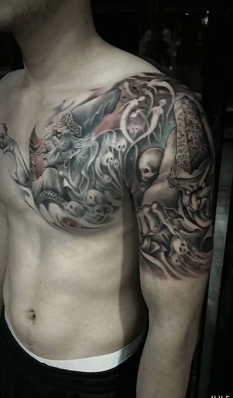 • 纹身吧推荐的披肩图腾半胛纹身图案作品展示
