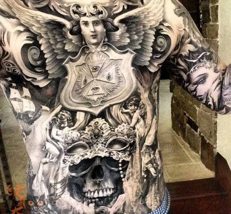 • 纹身吧推荐的披肩图腾半胛纹身图案作品展示