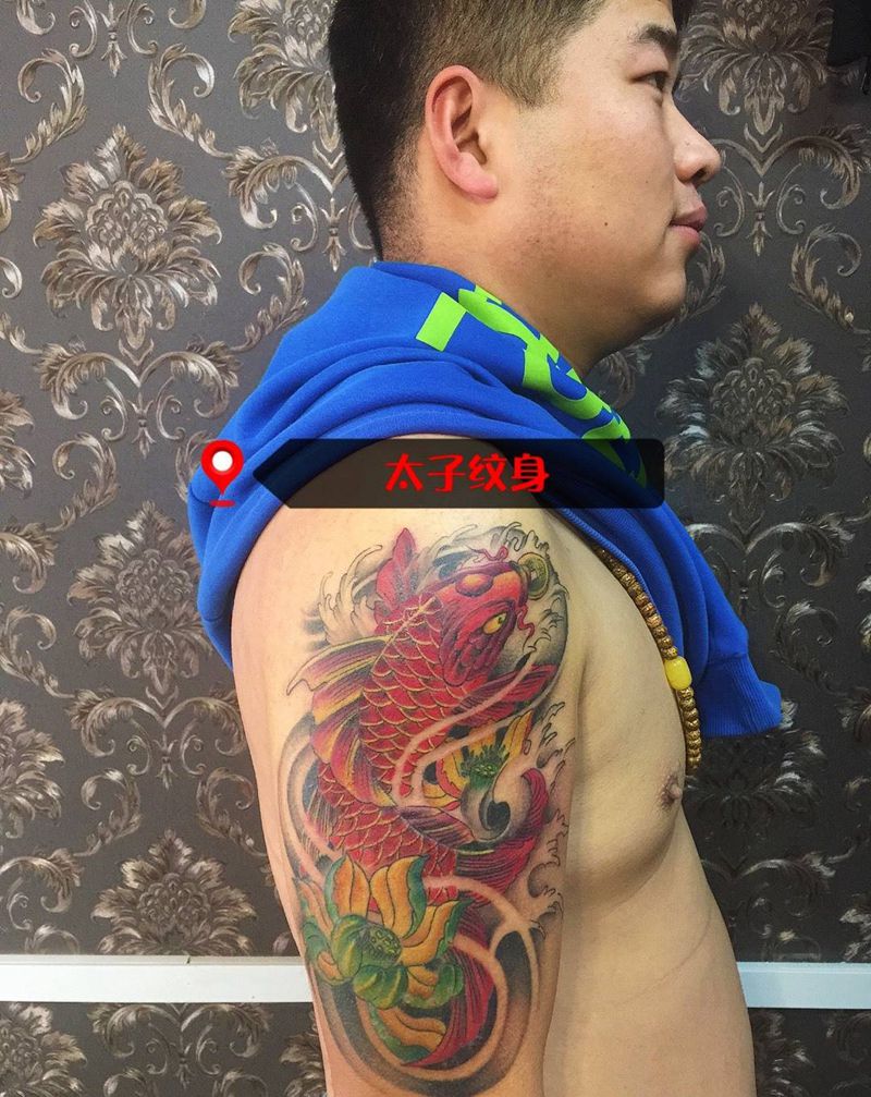 当前位置: 首页 >山东省济南市纹身店-太子纹身纹身图案>一条鱼纹身图片_成品手部肩部传统动物纹身图案